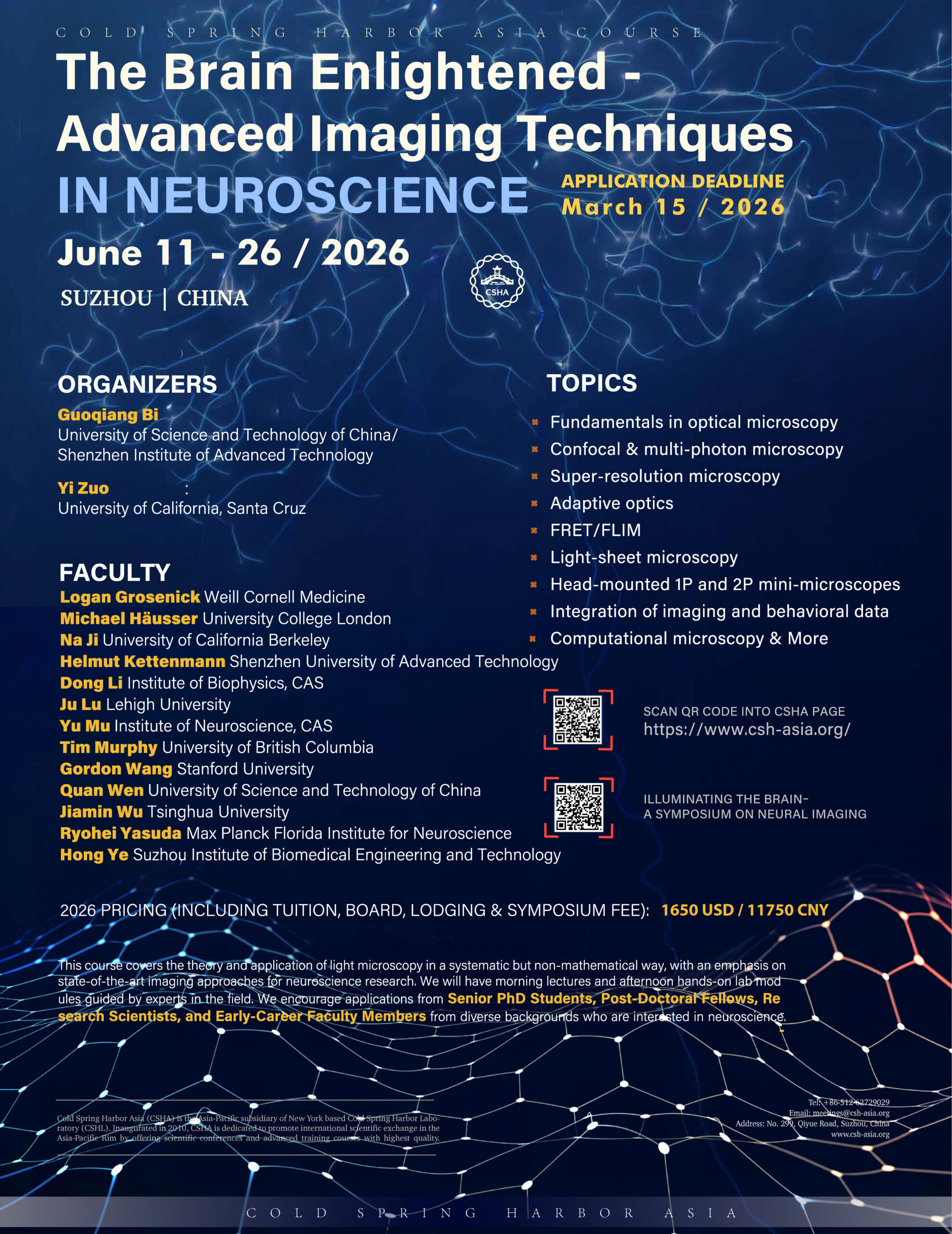 Cold Spring Harbor Asia – The Brain Enlightened – Advanced Imaging Techniques in Neuroscience↗